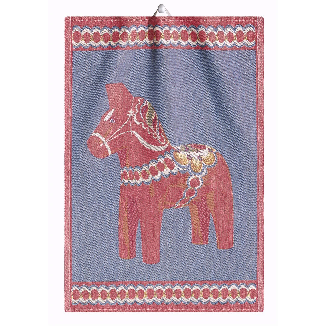 Het meest Zweedse symbool is het Dalapaard, hier afgebeeld op een schitterende linnen theedoek van Ekelund.